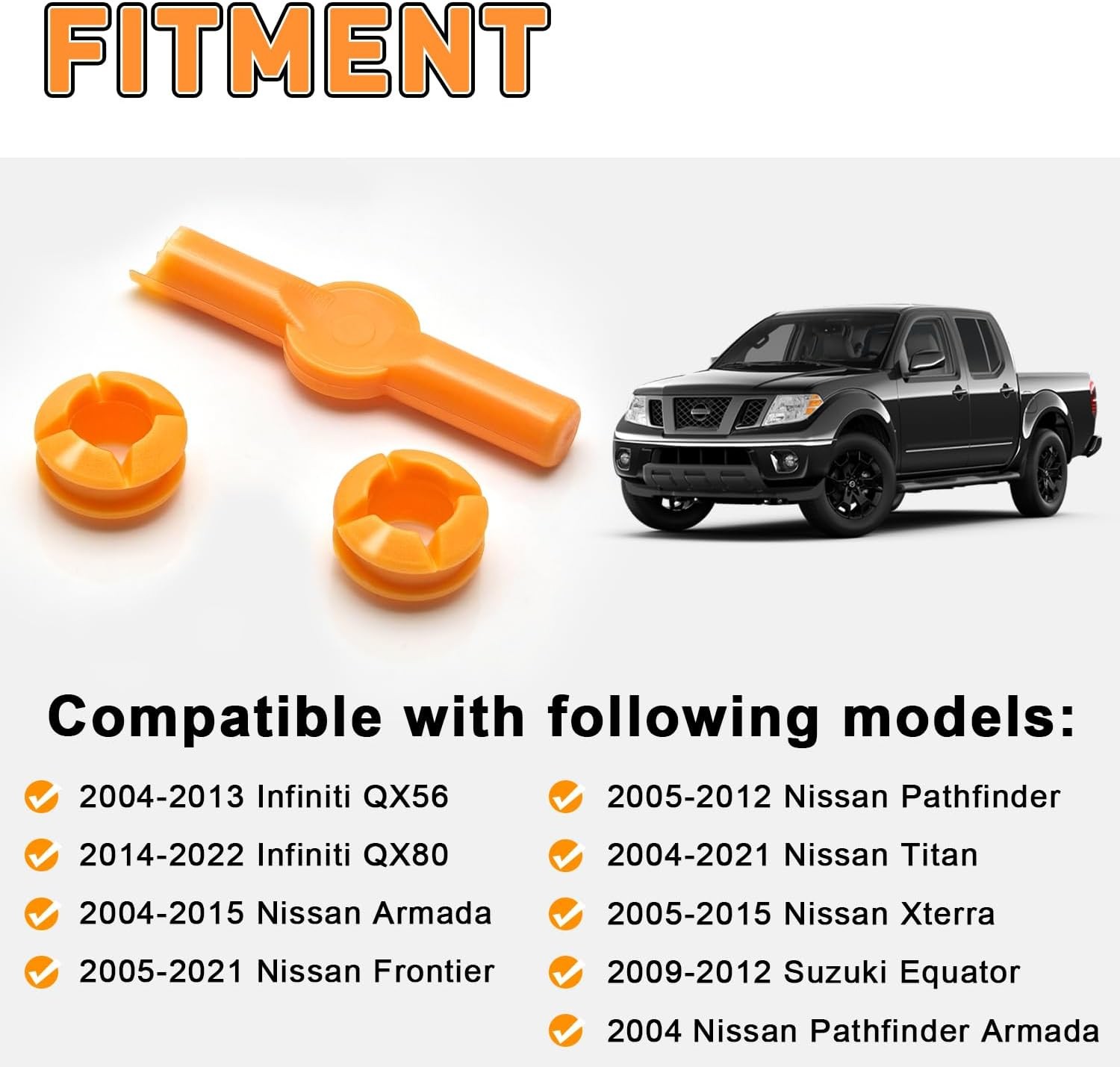 Free eBay listing template designed by dewiso.com 134193 Gear Shift Bushing for Nissan Armada Pathfinder Frontier Titan, Transmission Shifter Linkage Cable Bushing Repair Kit Xterra Infiniti QX56 QX80 Suzuki Equator 349351LA0A,34935ZR00A (4Pcs) FREE AND FAST SHIPPING! FITMENT:134193, 349351LA0A, 349357S00, 34935ZQ60A, 34935ZR00A. for Nissan Titan 2005 - 2021, Nissan Armada 2004 - 2015, Nissan Frontier 2005 - 2021, Nissan Pathfinder 2005 - 2012, Nissan Xterra 2005 - 2015, Nissan Pathfinder Armada 2004-2015, Infiniti QX56 2004-2013, Infiniti QX80 2004-2022, Suzuki Equator 2009-2012 REAL AND RELIABLE QUALITY: Shift linkage bushings are made of high quality ABS plastic material, tough and durable, our shift lever bushings are carefully crafted to make the car shift smoothly. Our shift lever bushings are custom made to fit your vehicle perfectly according to the original model and to improve your driving safety EASY TO INSTALL: Our shift cable bushing repair kit is fairly simple to install, you can repair and replace your shift cable bushing in minutes. Our transmission shift cable replacement bushing repair kit provide tool to keep it installing quickly and easily EXTRA ONE MORE REPLACEMENT BUSHINGS: The transmission shift cable bushing repair kit comes with two repacement bushings, it is convenient for future use or for other vehicles. When shift cable came unhooked, using our transmission shift linkage bushing repair kit can solve the trouble of repalcing the cable well OUR GUARANTEE: Package Include: 2 bushing +1 repair tool+1 Lubricant Oil, totally 4 pieces. We can guarantee our 134193 transmission shift cable bushing repair kit with no-questions. If you have any issues, please contact us and we will solve it for you within 24 hours Product We offer a 30-Day Return Policy on items which you are not completely satisfied with. You have the option for a full-refund or an exchange of the item. No returns are available on items shipped outside of the US . Shipping We offer Free Shipping to the US and ship within 2 business days of payment, usually sooner. We use UPS express shipping. That's why your products are usually delivered within 3 days . Contact We try our very best to make sure every customer is completely satisfied. If there's a problem , message us! We're happy to help. 24/7 live chat available.