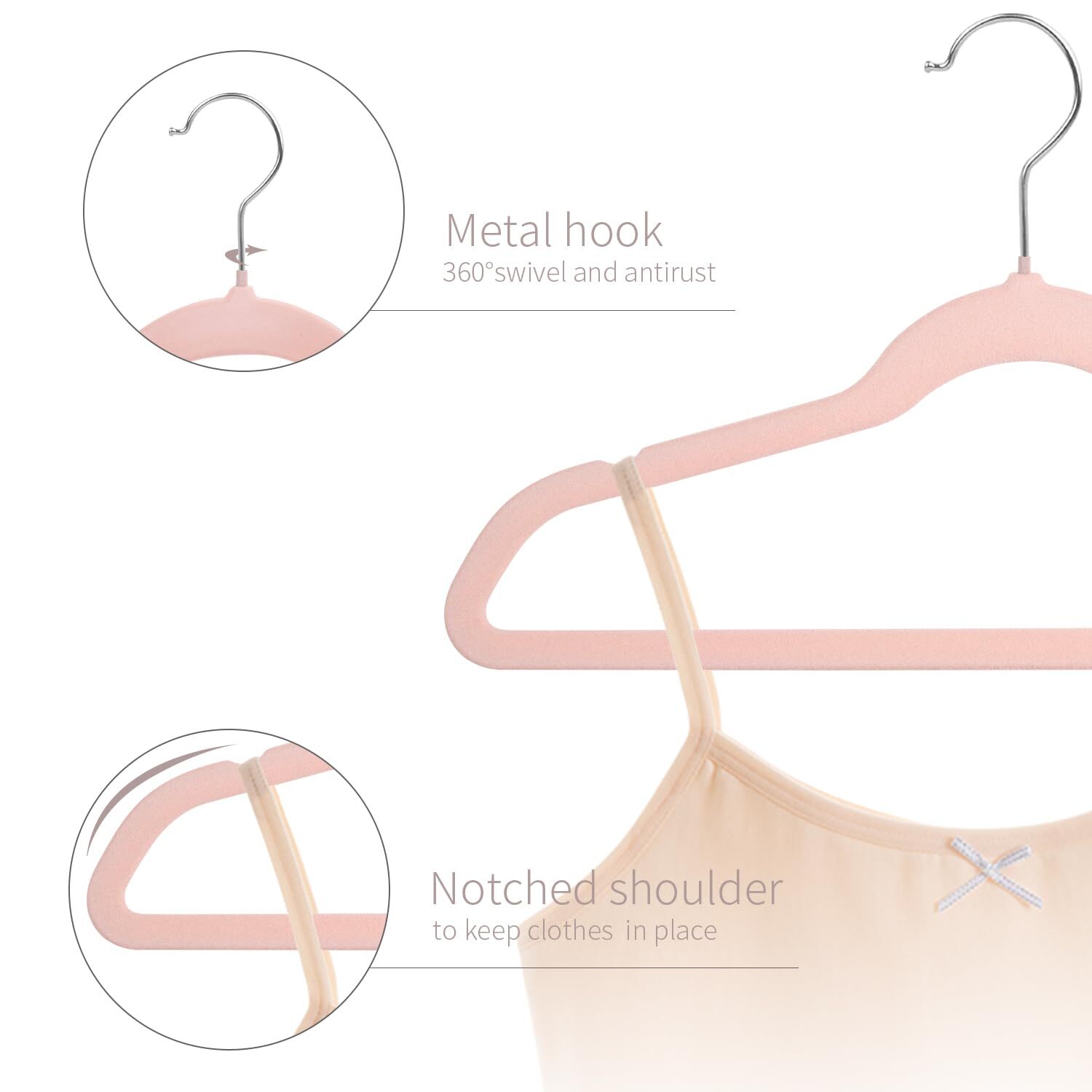 [Kids Velvet Hangers]: Made of high quality ABS plastic, the velvet kids hangers are sturdy, and a pack of 32 is enough for daily reuse. Great junior hanger, L 13.8" x W 0.2" x H 7.9" (35 x 0.5 x 20 cm) size fits kids clothes from 7-15 years old. [Non-slip Design]: The children's hanger is covered with soft velvet to avoid wrinkling of clothes. Notches at the ends of the shoulders make it easy to secure vests, shirts, skirts and any children's clothing with straps. [Space Saving]: Ultra-thin felt hangers to maximize your closet space and keep your clothes neat and organized. The top is equipped with a 360° swivel hook to make hanging and accessing your clothes more convenient and flexible. [Dual Functions]: Hang tops, pants or both on the kids' hanger, which has contoured shoulders to help keep the shape of your child's clothes. Featuring 13.8" wide contoured shoulders and a horizontal pants crossbar design, the possibilities for hanging and organization are endless. [ManGotree Notes]: Before using the kids velvet hangers, use a hair dryer to blow or over the water and then air dry, can effectively remove the surface floating hairs. Due to the characteristics of flocking hangers, the newly produced hangers and their bags will stick to a little floating hair, which is a normal phenomenon, not a quality problem, please feel free to buy.
