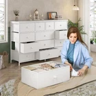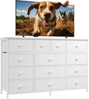 Product Description Dresser for Bedroom with 13 Drawers 13 Drawers Dresser Large Space Storage Drawers Dresser for Bedroom White Dresser Add to Cart White Dresser Add to Cart White Dresser Add to Cart White Dresser Add to Cart White Dresser Add to Cart Customer Reviews 4.1 out of 5 stars 51 4.1 out of 5 stars 362 4.0 out of 5 stars 23 4.5 out of 5 stars 724 4.1 out of 5 stars 242 Price $109.98 $ 109 . 98 $109.98 $ 109 . 98 $139.99 $ 139 . 99 $99.98 $ 99 . 98 $99.96 $ 99 . 96 Size 11.8"D x 47.2"W x 33"H 15.4"D x 47.2"W x 27.6"H 11.8"D x 55"W x 33.5"H 38.4"D x 39.4"W x 38.4"H 11.8"D x 43"W x 30"H Number of Drawers 13 9 12 5 8 Material Metal & Wood & Fabric Metal & Wood & Fabric Metal & Wood & Fabric Wood, Metal, Fabric Wood, Metal, Fabric Charge Station ✘ ✘ ✔ ✘ ✔ Adjustable feet ✔ ✔ ✔ ✔ ✔ On Apr 1, 2025 at 21:23:06 PDT, seller added the following information: