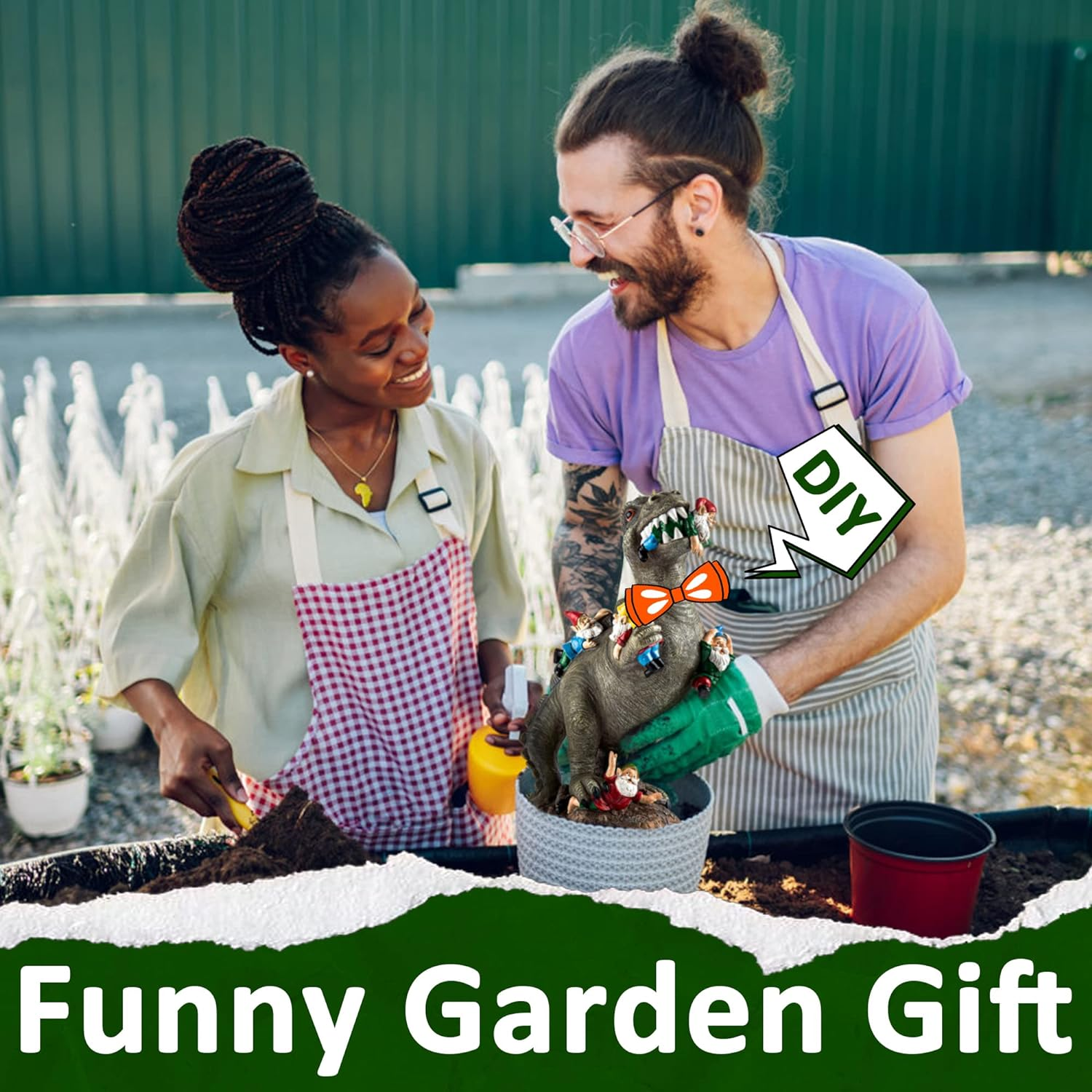 Description: Exquisite Handicraft: Every Garden Gnome Statues are meticulously hand-painted with vibrant colors, showcasing exquisite craftsmanship. Each part is crafted from long-lasting resin and adorned with UV-resistant paint, ensuring both the durability and high-quality finish of the statue Great GIFT Ideas: With a size of 10" L x 6" W x 14" H, the Garden Gnome Figurine is a good gift choice. It is a perfect present for your family and friends on occasions such as Christmas, Thanksgiving, Birthdays, and Mother's Day. A great house warming gifts for new home Adorable Garden Decor: This Dinosaur Gnomes Statue made up of high-quality resin and has excellent weatherproof performance, is an adorable decoration for garden, lawn, patio and yard which can make your home more lively WEATHERPROOF DESIGN: Crafted from resilient resin, the Garden Gnome Trex Statue is built to endure harsh weather conditions, including scorching sun, torrential rain, and occasional snowfall throughout the year