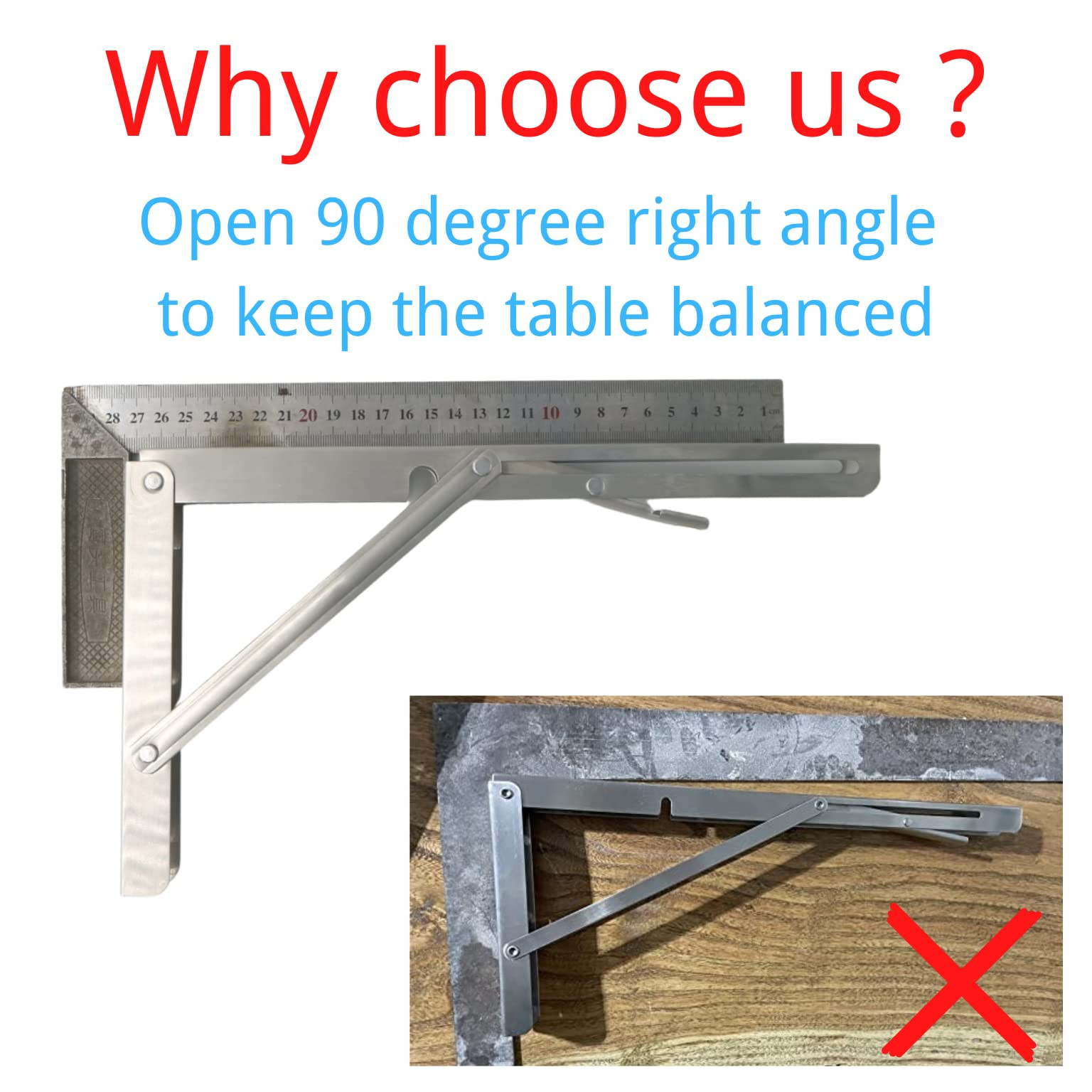 More Sturdy:The folding shelf bracket slide reinforced and widened,stronger than ordinary slide to prevent deformation,rivets using strong performance chain nails to prevent rivets from falling off. More Durable:The folding shelf brackets heavy duty is made of high quality stainless steel,with good corrosion resistance and rustproof performance.High-quality brushed stainless steel, no need to paint,more durable and healthier. Good Quality:The folding table bracket is 90 degrees,the surface is flat;the edge of the collapsible shelf bracket is smooth to prevent scratching;the folding switch is extended to avoid wall wear. More Size & Widely Used:Dimensions of the foldable shelf bracket:8 inch-24 inch,Sturdy triangular construction,Max load: 550 lb,These shelf bracket are perfect for many home DIY jobs.Could be used to make a folding workstation in your garage,stores,workshops,boats,motorhome,backyard,trailer,room, kitchen,balcony,bathroom. Quality Assurance:Free lifetime technical support.If you have any problem with the goods you received,please contact us by email as soon as possible,and then we can solve your problem quickly.So,please just enjoy this absolutely risk-free purchase.
