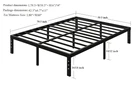 Reinforce Support: This black queen bed frame are made of reinforced durable steels and 9 thick legs allow the whole platform with strong weight capacity, stable and no shake, and stay away from squeaking. Got one bed frame from us to make you fall asleep quickly and have a sweet dream. No Box Spring Required: Bed frame queen fits a matching mattress size L80" x W60" and do not need the extra box spring. The smooth black slats also protect your luxury mattress from damage and increase the mattress life. Easy to Assemble: The bed frame is a simple composition structure, and all the required hardware and tools are included. The clear instructions will take you step by step to complete the assembly. Headboard is compatible, but not included. Under Bed Storage: 14 inch high metal queen size bed frame can store various items, and you don’t need worry about the accumulation of items and make the space cluttered. Enough storage space will greet you a clean and tidy room. Minimalist Design: Simple and elegant design style will enhance the beauty of your bedroom. Metal bed frame in queen size of: 79.5x59.5x14 inches and package measures: 42 by 11 by 7 inch is a small and easy to move package.