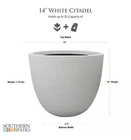 14 Inch Citadel lightweight resin planter, White, Southern Patio 14in D X 12in H. Condition is New. Shipped with USPS Priority Mail.
