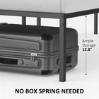 STURDY STRUCTURE: Unique heavy-duty three-in-one metal slat design makes the stress points more even, ensuring the support and stability of the bed frame. Product dimensions: 80" L x 60.3" W x 13.8" H, 800LB weight capacity. NO BOX SPRING REQUIRED: Reliable metal slats are matched to your memory foam, latex or spring mattress, and you no need a box spring to extend the life of your mattress. 6 fixtures stop the mattress from slipping. UNDER-BED STORAGE: This metal platform bed frame has 13 inches of clearance at the bottom for storage of sundries, storage boxes, etc., saving space in the bedroom. NOISE-FREE DESIGN: Foam sealing tape on the metal frame rods prevents noise from friction. Rubber protective feet isolate the ground to prevent the bed frame from sliding and scratching the floor. EASY TO ASSEMBLE: Simple construction allows for quick assembly. Package includes labeled hardware, installation tools, and instructions.