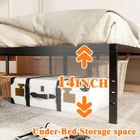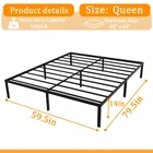【Sturdy Steel Frame】Metal queen bed frame made of alloy steel,which is stronger and more durable than ordinary bed frames, Reinforced metal bed legs and steel slats supports up to 3500 lbs,stable and no shake,stay away from squeaking,much safer and firm. 【Non-Slip and Noise Free】Classic black paint metal queen platform frame with plastic spacer under the foot of each bed to prevent the bed from sliding. Reinforced steel slats support,stable and no shake,stay away from squeaking. 【Adequate Under-bed Storage】There is ample storage space under the 14inch queen platform bed,Convenient for you to store various items. 【No Box Spring Needed】Our metal queen size bed frame no need to buy additional springs, you can place the mattress directly on the bed frame. 【Easy Assembly】The queen metal bed frame installation is very simple, read the instruction , you can complete it independently within 20 minutes.