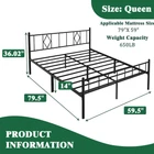 Store New Arrivals Add to Favorite View Feedback Contact 14 Inch Queen Size Bed Frames with Headboard/Footboard, under Bed Storage, Strong Metal Slats Support, No Box Spring Needed, Noise Free, Easy Assembly, Black Description Finish Type Powder Coated Assembly Required Yes Color Black Material Metal Style 14 inch Product Dimensions 79.5"L x 59.5"W x 14"H Country of Origin China Maximum Weight Recommendation 500 Pounds Furniture Finish Black Compatible With Mattress Size Queen Item Weight 44.2 pounds Included Components Headboard Special Feature Squeak Resistant Size Queen 【Strong and durable】 Platform bed adopts steel structure, no noise structure, strengthen leg support, powder coating surface has medium rust resistance and scratch resistance, suitable for long-term use, let you sleep well. 【 Easy to assemble 】The package includes all the necessary hardware and clear installation instructions, and can be easily set up in less than an hour, saving you time and hassle. 【 Adequate under-bed storage space 】With 12.4 inches of storage space, it keeps your room tidy and allows easy access to the boxes and baskets below, as well as easy access to and from the bed, suitable for sleepers of all ages. 【 Headboard and footboard 】With a headboard and foot boards to better protect your head and provide you with a comfortable sitting position, you can lazily read a book or watch TV with a soft pillow behind your back. 【 Safe and comfortable 】 This carefully designed metal platform bed with rounded corners, smooth surface and protective foot pads makes it safer for our customers to use. In addition, high foot boards prevent bedding from falling onto the floor while you sleep. Product Description More Products from Decorwise Add to Cart Add to Cart Add to Cart Add to Cart Add to Cart Add to Cart Customer Reviews 4.5 out of 5 stars 183 4.5 out of 5 stars 183 4.5 out of 5 stars 183 4.5 out of 5 stars 183 4.5 out of 5 stars 183 4.5 out of 5 stars 183 Price $56.99 $ 56 . 99 $59.99 $ 59 . 99 $64.99 $ 64 . 99 $79.99 $ 79 . 99 $99.99 $ 99 . 99 $103.99 $ 103 . 99 Dimension (L*W*H) 74.5" * 38.5" * 14" 79.5" * 37.5" * 14" 74.5" * 53.5" * 14" 79.5" * 59.5" * 14" 79.5" * 75.5" * 14" 83.5" * 71.5" * 14" Load-bearing 800 lbs 800 lbs 1000 lbs 1000 lbs 1000 lbs 1000 lbs Model Single bed Single bed Double bed Double bed Double bed Double bed Easy Assembly ✓ ✓ ✓ ✓ ✓ ✓ Box Spring Needed NO NO NO NO NO NO Color Black Black Black Black Black Black ABOUT US We offer the best prices around on high-quality products. Our E-store includes media such as books, movies, music and games while offering electronics, toys, sporting apparel, clothing, tools, general home, garden items, and more. SHIPPING We are always working hard to ensure your package arrives as soon as possible. Please understand that some factors like weather, high postal traffic, and the performance of shipping companies are outside of our control. We offer free shipping to the lower 48 states and ship within 3-5 business days of payment, usually sooner. We do not accept P.O. Boxes, APO, or AFO addresses. Please provide a physical address. Due to technical reasons - an order can't be canceled once placed. Payment We currently accept payment via eBay managed payments only. Once payment is cleared, we will dispatch your shipment within up to 5 business days. Please refer to the "Shipping" tab for more information regarding shipping speed to your destination. RETURNS We offer a 30-Day Return Policy on items that you are not completely satisfied with. You can get a refund, less 9% for shipping and restocking the item. Returns accepted ONLY with our return label, not your label or ebay label. The item must be in a new and unused condition. PAYMENT We accept PayPal. CONTACT US This page content is yet to come Please ad us to your favorite seller and visit again later Thank You CUSTOMER SATISFACTION We try our very best to make sure every customer is completely satisfied. If there's a problem, message us! We're happy to help.