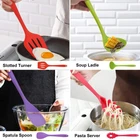 Value kitchen utensils set, all basic cooking utensils are contained in this set to meet your different cooking needs, come with soup ladle, slotted turner, pasta server, solid spoon, slotted spoon, spatula spoon, small spatula spoon, large spatula, small spatula, whisk, tong, spreader spatula, brush and utensils holder Food grade silicone, 14 pieces kitchen cookware utensils are made of premium silicone without harmful substances, no smell odor and would not react with your foods, safe and healthy for cooking, non-scratch silicone utensils protect your pans and pots Heat resistant, this heat resistant silicone cooking utensils set can withstand high temperature up to 446ºF, do not worry about melting at high temperature cooking or leaving in hot pans for a while, perfect for family everyday cooking, stirring, frying, baking and mixing Exquisite crafted, seamless one-piece molding without any gaps to capture foods to make cleaning a breeze, solid and sturdy structure will not warp, crack or deform, non-slip silicone handle is anti-scalding to prevent you getting burned, dishwasher safe to save your labor Attach utensils holder, our cooking utensils plus holder for convenient storage, each handles of kitchen set have a small hole for hanging, keep your kitchen neat and organized, colorful utensils will live up your counter, wonderful gift for wedding, housewarming, thanksgiving, Mother’s day, Christmas and more