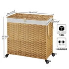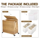 Handwoven Craftsmanship - laundry hampers with wheels are made of durable synthetic rattan materials that are waterproof. The laundry basket with lid is made by professional craftsman, and each piece is unique, so there are subtle differences. Waterproof and adjustable foot pads are added to prevent the clothes from touching the floor. Bright natural veneers and delicate weaving, work well with any style of furniture design, lightweight and durable Wide Inner Space - 2 types of liner bag of different specifications - 2-section liner bag can hold larger pieces and more clothes in each grid, 3-section liner bag can easily sort clothes of different colors. The thickened wire frame on the laundry basket improves load bearing capacity and leaves more space inside. Added PU decorative handles, make it easy to open the hamper lid to put the dirty clothes into the basket, keeping your room tidy and clean Detachable and Washable Linings & Mesh Bags - Each laundry hamper with lid is equipped with 2 detachable liner bags, so the clothes can be conveniently taken out from the basket and transported to the washing machine. The 2 liner bags are convenient to move, wash and replace. The hamper lid hides the smelly clothes while keeping the dirty clothes invisible. 5 mesh laundry bags make washing easier and cleaner, which are suitable for bath towels, coats, jeans, underwear, socks and so on Home Companion - The liner bags are made of high-quality stitching process. Put the liner bag into the basket and support its top and make it open to reverse basket . The back lining strap is tied to the basket to prevent it from falling. It can easily hold up to 140L of clothing, making storage of clothing easy and relax. Clothes are easily separated with 5 mesh laundry bags, which can easily solve the problem Easy to assemble, large capacity - Convenient tools are equipped for easy installation. Large capacity 140L size: 25.6 (L) x 13.0 (W) x 25.7 (H) in. The laundry basket with double-sided Inscribed handle can easily move blankets, towels or daily clothes among different rooms. The maximum load capacity is 110LB