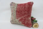 14"x14" Red Cushion Cover, Antique Pillows, Kilim Pillow Cover, Turkish Pillow