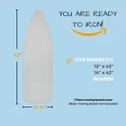 Not for Over-the-door Ironing Board, Only for ordinary ironing boards. Package Included : 1 pcs ironing board cover, IRONING BOARD NOT INCLUDED Fit 14x42 and 12x42 Inches Boards : Don't worry , this cover is true dimensions. If you have ordinary door ironing board, this cover is excellent choice SPECIAL DESIGN: The elastic cord, Non-slip Plastic Button covers easily to board. Surround all of board, do not slip and slide. with brabantia A series. COMFORTABLE IRONING: The 4 layered professional deluxe ironing board cover and pad design reflects and distributes the heat of the iron to help achieve perfect free clothes in a short time. 4 LAYERS SILICONE COATING PURE COTTON THICK PADDING: Tabletop ironing cover silicon coated layer is extremely heat reflective scorch and stain resistant for fast ironing. Iron table cloth stain assistance pure cotton layer, thicker foam padding and extra durable and professional ironing board cover non slip felt layer for unique ironing experience.
