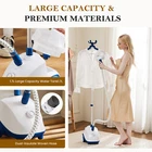 1. Powerful steaming: With a 1500W motor, this standing garment steamer offers powerful and efficient steaming capabilities, effectively removing wrinkles and creases from a variety of fabrics. 2. Large water tank capacity: The steamer features a 1.7L water tank that provides up to 55 minutes of continuous steaming, allowing for extended use without the need for frequent refills. 3. Convenient roll wheels: Equipped with roll wheels, this garment steamer is easy to maneuver and transport from one area to another, providing flexibility and convenience while steaming clothes. 4. Professional wrinkle remover: This standing garment steamer is designed to deliver professional-grade results, offering a quick and effective solution for removing wrinkles and refreshing clothing items. 5. Fast heating: The steamer heats up in just 45 seconds, allowing you to start steaming your clothes quickly and efficiently, saving time and energy when preparing your garments for wear.