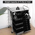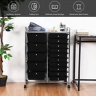 Description: Is there too many small things in your house and no place to put them? Is it difficult for you to move the items in the cabinet to another place? Have a look at this 15 drawerrolling storage cart organizer. With this multipurposemobiletrolley, your problem would definitely be easily solved. 5 big drawers and 10 small drawers satisfy your different storage needs. And the four universal wheels make the moving process more convenient and easy. Besides, the interlock systemhelp you stop the mobiletrolley at any time. And it equips a electroplated steelframe, which make the rolling storage cart durable and sturdy for long term use. Moreover, the stylish appearance could easily match your home decoration and make your space charming. Take it home and enjoy a convenience lifestyle. Features: Colorful design make your space stylish Tall handles make it easy to push and pull The interlock systembrings more convenience Detailed instruction make assembly procesee easy The electroplated steelframe ensure the durability Big and small drawers meet your different storage needs Four universal wheels allow you to easily change the direction of movement Specification: Color: As the picture shows Material: Steel, PP Dimension: 25”x 14.5”x 34.5”(L x W x H) Net Weight: 17 lbs Package Included: 1 x 15 DrawerRolling Storage Cart Sturdy and Firm Structure: The frame of this storage drawer cart is constructed of high-quality steel for bearing more weight not wobbly and processed with smooth chrome finish for long-lasting use. And 15 craft drawers are made of superior odorless PP material for wear-resistant and lightweight. Large Storage Space: Measuring 25inch x 14.5inch x 34.5inch(L x W x D) in dimension, the organizer cart provides plenty of space to different belongings, such as kitchen supplies, cosmetics and more. And the organizer top offers extra storage space. Flexibility and Useful Design: The art drawers slide unattached through metal channels easily and smoothly. Besides, the knob of drawers also offer much convenience for taking your stuff when you need it. The four universal wheels (locking) can swivel 360 degree and this feature will help you convenient move it. Easy for Installation and Maintenance: This rolling cart is convenient to assemble with the clear and easy to understand instruction. And the smooth surface is easy to clean with a damp cloth. Beautiful Decoration: In addition to its practical storage use, these colorful boxes also work as a beautiful decoration item in your living space, bathroom, school, garage, office. Different colors offer you much convenience to classify your stuff.