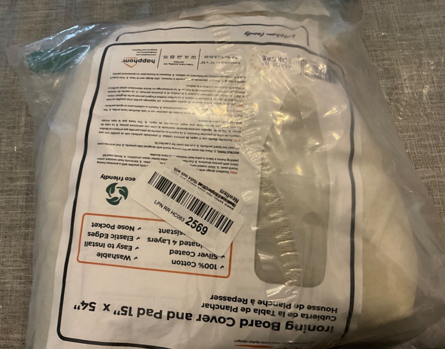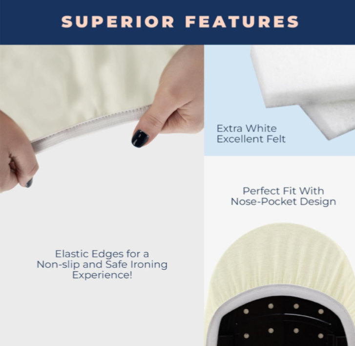 I apologize at this time I do not ship to Alaska or the Virgin Islands. Thank you and sorry for the inconvenience. 15x54” ironing board cover with padding made by HAPPHOM 100% cotton Silver coated 4 layers Scorch resistant Washable Easy to use Elastic edges Nose pocket About this item PREMIUM ECO-FRIENDLY, PURE COTTON, NON-CHEMICAL TOXIC COVER - Breathable non-chemical cotton laminated with superior thick felt and foam. Toxic and unnatural materials can be harmful while ironing at 250 degrees Celsius. You no longer have to worry about your health while ironing with this eco-friendly material. 4 LAYERS EXTRA THICK PADDING FOR REMARKABLE DURABILITY - 4 layers heavy duty padding provides exceptional durability to ironing board cover and pad. Top layer (1st) is extremely scorch and stain resistant cotton fabric. Felt padding (2nd) provides extra heat resistant structure. Eco foam (3rd) provides better steam circulation. Durable and thick felt lining (4th) will maintain a flat shape during ironing. NOSE POCKET AND ELASTIC EDGES PROVIDE PERFECT NON-SLIP FIT - Elasticized edges and nose pocket design fits the board perfectly. Slipping and the exposure of the edges will be prevented by this. Providing you to have wrinkle free clothes in a shorter time. This ironing board cover and pad is designed for standard size boards (15x54 inches). IRON FASTER AND BETTER WITH REFLECTIVE HEAT- Silver coated top layer reflects the heat of iron back to the clothes so you achieve perfect and wrinkle free clothes in a fraction of time. It’s like having the iron heat on both sides of your clothing at the same time. It also absorbs less water than regular covers. You’ll notice how our ironing board covers eliminate the creases and annoying folds. GENEROUSLY SIZED AND EASILY TAILORED TO FIT A WIDE RANGE OF BOARDS - The 15 inch x 54 inch cover fits all standard sized ironing boards. It is also designed to fit boards that measure 52 to 54 inch in length and 13 to 15 inch in width. One size does not always fit all! Please measure your board before purchase. Please add an additional $10 to the shipping rate for orders shipping to Alaska, Hawaii, Puerto Rico and US Virgin Islands. Thank you.