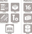 Akro-Mils 16-Drawer Plastic Drawer Storage Cabinet for Garage Organization, Beads, Makeup Organizer, Building Bricks Storage, Teacher Toolbox, 10-1/2-Inch W x 6-1/2-Inch D x 8-1/2-Inch H, 10116 Black Color: Black Size: 16 Drawer Color Black Material Plastic, Polystyrene Frame Material Plastic Brand Akro-Mils Product Dimensions 6"D x 11"W x 9"H About this item plastic HEAVY DUTY CABINET WITH 16 DRAWERS: The 16-drawer small storage cabinet is made in the U.S.A. from rugged, high-impact plastic and measures 10-1/2" W x 6-1/2" D x 8-1/2" H; Organizer drawers - 6" x 2-7/32" x 1-9/16" GARAGE ORGANIZATION: The small parts organizer is great for garages and workshops for both homeowners and businesses; The plastic storage drawers can be used as tool box, screw organizer or for battery storage; Keep nails and other small parts accessible CLASSROOM ESSENTIALS: Teachers can use the stackable storage drawers for classroom organization; Use it as a teacher toolbox, art supply storage organizer, craft storage cabinet for scrapbook supplies, and more HOME STORAGE AND ORGANIZATION: This plastic storage cabinet offers many uses around the home; It can be a lego storage organizer, craft organizer, or sticker organizer; Use it for makeup storage and organization or for medicine and first aid supplies FEATURES: Stack cabinets securely or use keyhole slots to mount for wall storage; Finger-grip drawer pulls provide easy access; Rear stop tabs prevent contents from spilling; Drawer dividers are included and molded into the back of the cabinet (Item does not ship to Miami&Doral, FL), have any problem please contact us !