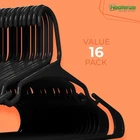 Clothes Hangers Plastic 16 Pack for Adults - Plastic Hangers, The Perfect Coat Hanger and General Space Saving Clothes Hangers for Closet - Black Hangers PATENT PENDING UNIQUE DESIGN : Discover the game-changing hanger shape by Neaterize, designed to prevent the dreaded slump of suits and dresses. Our patent-pending design guarantees that your clothes hang flawlessly, maintaining their pristine condition and alignment exactly as you arranged them. Plus, a clever notch caters to those sleeveless garments in your closet. Measures 15.9 ’’ x 7.4 ’’ x 0.22 ’’ and is available in packs of 16 - we mean it when we say we ’ ve got you covered! MESS BE GONE! Organize and store tops, shirts, pants, skirts, dresses, suits, shawls, coats and more with these ideal hangers. Maximize on space due to their slim, space saving design and enjoy the clean, calming effect on your closets. Say goodbye to that tangled clutter of hangers in every size and shape! PRETTY AND PRACTICAL ! We offer both; a vibrant array of 8 eye catching and elegant colors to beautify your storage space, smartly designed to combine function and fashion! Replete with 2 notches for air drying, lingerie and accessories, it ’ s got everything you could wish for a hanger! BEST MADE HANGERS ! Constructed from heavy duty, non-breakable plastic, as well as being eco- friendly and stain free, it ’ s the premium hanger on the market. Reinforced edges lends added support, while its tubular, smooth body ensures no sharp corners ripping your garments. Flexible for lightweight clothing, durable enough for coats, these hangers were built to endure! Perfectly Sized, Perfectly Designed Meticulously crafted for both aesthetic appeal and optimal functionality, our plastic hangers boast a perfect size and design, ensuring they not only look stylish in your closet but also work seamlessly to enhance the organization and presentation of your garments. Multiple Pack Sizes Available Effortlessly customize your closet organization with our meticulously designed plastic hangers, available in convenient pack quantities of 16, 30, 50, and 100, providing flexibility and versatility to meet the size of your wardrobe while ensuring an organized and cohesive display for all your garments. Snag Free Design Experience garment care at its finest with our plastic hangers featuring a smooth, snag-free shape, designed to pamper your clothes and eliminate the risk of snags that could compromise their integrity, ensuring a seamless and gentle storage solution for your wardrobe.