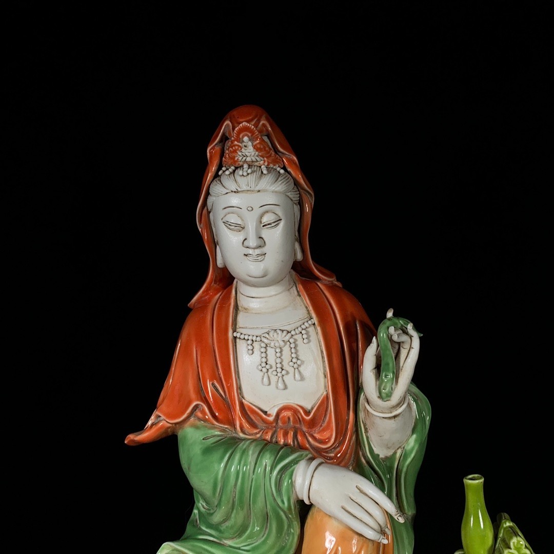 The product is a 17.7" old Chinese Dehua kiln porcelain figurine of Kwan-yin sitting on a rock carefree. This antique original piece from the Qing Dynasty features handcarved details typical of Chinese artistry. Made in China, this figurine showcases traditional craftsmanship and regional origins, making it a unique and culturally significant piece for collectors of Asian antiques. With a height of 45cm, this Kwan-yin figurine embodies the elegance and spirituality of ancient Chinese art. Size: H45, W 28cm AA06 德化瓷加彩自在观音,高45厘米 直径28厘米 PAYMENT Please pay within 7 days of purchase, otherwise the order will be closed. DELIVERY DETAILS Shipping: about 7-15 days to arrive. International shipping: about 12-25 days to arrive. TERMS OF SALES About usIf which item was damaged or lost on shiping way. Please don't Worried and angry, Please be sure to contact we first. We are very willing to accept everything. and I will do my best to help you to solve the problem by communication. So only by friendly communication,is to resolved the problem a good way. however, some buyers before solve the problem first to our account leave neutral and negative feedback (this kind of behavior is not welcome) Contact us Do not forget to give us a positive 5 star rating after receiving your item. This is very important. thank you very much. We hope you are satisfied with our products and services. Thank you for your understanding of each seller, I wish you a happy shopping! Happy everyday. If you have any question, please contact us, we will give you the answer in a timely manner. ABOUT US We are a company that we collect beautiful Chinese antiques and fine arts and crafts,Art is the human best interpretation of beauty. We collect the folk fine art from China. Our collection of Chinese porcelain, purple clay sculpture. We experienced, vision, provides the high-quality service for you, would you please come into our store, sharing the Oriental civilization interpretation of beauty! Thank you very much!
