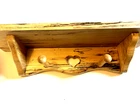 The 17" Wall Hung Shelf with 2 Cloths Hanging Pegs is a stylish and functional addition to any room. Made of solid wood with a light wood tone, this rectangular shelf features a patterned design in brown color. It includes one shelf for displaying plates or decorative items and two hanging pegs for cloths. Made in the United States, this shelf does not require assembly and is perfect for organizing and decorating your home.