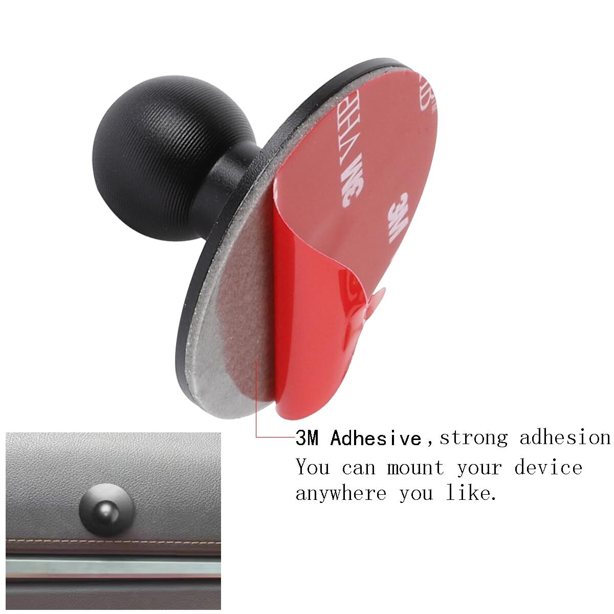 Adhesive 17mm Ball Base with Extension Adapter Compatible with Garmin Nuvi GPS Navigator,Car Cellphone Holder Dashboard Mount 17mm Ball Head Stand Base.This 17mm ball joint base is designed to be compatible for phone holder and Garmin devices utilizing 17mm swivel ball mounting pattern. Versatile Compatibility: This 17mm ball joint base is designed to be compatible for phone holder and Garmin devices utilizing 17mm swivel ball mounting pattern. Superior Adjustability: Featuring dual 360-degree rotating joints, this base allows for universal adjustment, ensuring optimal positioning for your devices. Premium Materials: Crafted from durable aluminum alloy, this base is engineered to withstand even the harshest environments without cracking, providing stability and longevity. Secure Adhesive Mount: The 1.57-inch circular 3M adhesive tape ensures a secure attachment to most car dashboards, offering a reliable mounting solution.3M Adhesive Tape cannot be repeatedly glued. Before bonding the base, ensure that the required surface is clean and dry. After installation, let it stand for 5 hours before use. Package Included: 1x 17mm Ball base, 1x Double socket arm, 1x Ball to ball adapter, 2x 3M Adhesive,1x Wipes,1x Adhesion Promoter. Note: This metal base that is not flex and is not suitable for surfaces with excessive curvature.