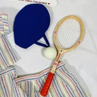 18" American Girl Doll Molly's Tennis Outfit - Limited Edition Set, Retired and Hard to Find. Tagged Special Edition 1997 Pleasant Company. Set includes Blouse, Overskirt, Shorts, Shoes, Tennis Racket, Tennis Ball, and Cover for Racket. Just missing hair ribbon and instructions from original set. In excellent pre-owned condition, only flaw noted is one faint smudge/stain on upper waistband of skirt, no other stains, rips, or signs of wear. Please see all pictures for exact cosmetic condition and other details, as they are part of the description as well, and ask any questions before purchasing. We are a husband and wife team with a growing family, and greatly appreciate your support of our small business. Please browse our eBay store for a variety of other American Girl items. We hope you enjoy this set!