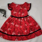 18" American Girl Doll Cecile's Special Dress Outfit: Red Floral Dress & Green Hair Ribbons. In like-new condition, no flaws noted, was owned by an adult collector and never played with, hair ribbons are in packaging and dress still has box folds. No box included. Please see all pictures for exact cosmetic condition and other details, as they are part of the description as well, and ask any questions before purchasing. We are a husband and wife team with a growing family, and greatly appreciate your support of our small business. Please browse our eBay store for a variety of other American Girl items. We hope you enjoy this set!