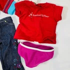 18" American Girl Doll Just Like You "Ready For Fun" Meet Outfit: Red Jacket, White Top, Embroidered Jeans, Magenta Underwear, Tennis Shoes. Just missing the socks. Also includes a bonus American Girl Place Chicago Red T-Shirt. All in gently played with condition, main flaw noted is some smudging on white shirt. Please see all pictures for exact cosmetic condition and other details, and ask any questions before purchasing. We are a husband and wife team with a growing family, and greatly appreciate your support of our small business. Please browse our eBay store for a variety of other American Girl items. We hope you enjoy this set!