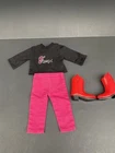 18 Inch Doll Clothes American Girl Our Generation Red Boots Pink Pants Cowgirl. Three piece outfit long sleeve shirt “Cowgirl” in rhinestones, stretched jeans and red cowgirl boots. Shirt and pants are unbranded. Funrise boots. Doll NOT included. Ships USPS ground shipping