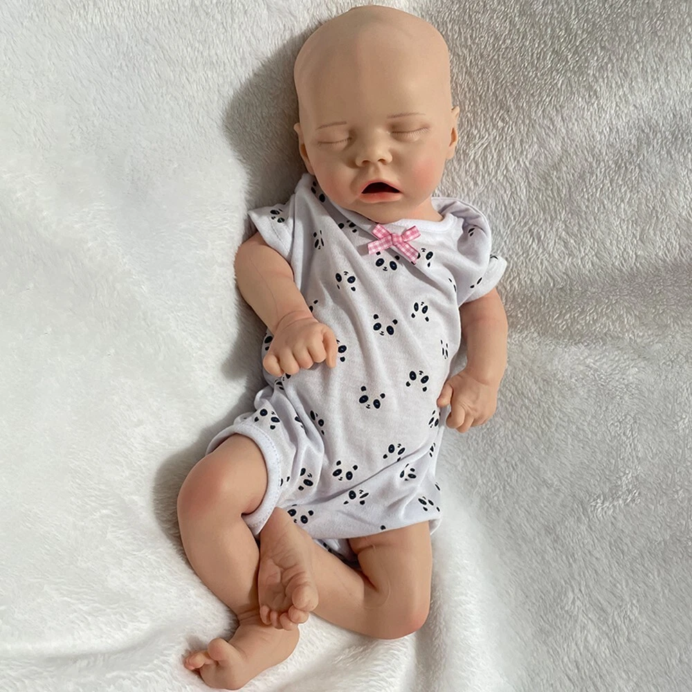 She is about 18 inch ,painted baby girl(Anatomically Correct) Net weight is :5.6 lb Mouth: she can take a pacifier Function: Doll's limbs are flexible and poseable, the doll can sit, lay down easily and have a bath, but cannot stand up, speak, pee, blink PACKAGE LISTS: 1x Full silicone baby girl. 1x outfit (by random) ★Full body silicone: Our reborn baby doll's is made of Platinum Liquid Full Silicone, she is Solid reborn baby dolls ★Better than Vinyl material: Medical silicone material is more environmentally friendly than vinyl and safer for your babys. ★PVC Free, Non-Toxic ★More real feeling: Our doll's touching feeling is like a real baby than Vinyl dolls ★Great for Child and Best Choice For Adoption: Let your child feel that he is a playmate and not just a toy. Because it is Weighted Body for a "Real" Baby Feel. ★The best gift for your child to improve social ability and open up thinking. Children will acquire strong cognitive ability. ★The best choice for collecting baby dolls. So we think you should choose us, Not only give you the lifelike baby dolls, but also give you more choices. We have different sizes and genders realistic baby dolls. • Safety: Conforms to the safety requirements of ASTM F963 and EN71 for ages 3+ 【Kind Reminder】Each of our dolls is purely handmade, and the pictures are real-life photos. There may be slight differences between each silicone doll, and there may be slight flaws. If you mind, please choose carefully. 【User Notice】 Our reborn baby dolls' head has a silicone injection hole. The injection hole is one of the processes of making dolls. So it will leave a slight mark on its head. This is not a doll's quality problem. Tips: Silicone doll daily care can be done by patting talcum powder all over the body after cleaning the doll, keeping it dry and avoiding sticking.