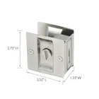 The 182121 2-Pack Rectangular Privacy Pocket Door Passage is finished in satin nickel. Ideal for sliding closet doors, this pocket allows you to smoothly open and close doors when needed. The twist-knob lock allows you to use this for bathrooms or other rooms where privacy is desired. This door hardware is made of solid brass and measures 2.75-inches by 2.52-inches by 1.33-inches. Designed and manufactured by , the trusted source for quality lighting, hardware, plumbing, kitchen, and bath products for every taste and budget. Mounting hardware included for easy installation Can be mounted on left and right hand doors Boasts a sleek, satin nickel finish Twist-knob lock allows you to use this where privacy is desired This item measures 2.75-inches by 2.52-inches by 1.33-inches