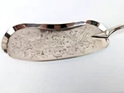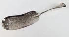 Gorgeous Large Ornate British Silver 13" Table Crumber or Large Serving Piece. Beautiful Hand chased pattern in the wide blade and an engraved Armorial on the Fiddle tip. Hallmarked for Elkington Mason & Co. and dated for 1855. In excellent well cared for Heirloom condition.