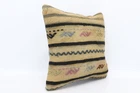 18"x18" Beige Cushion Cover, Antique Pillows, Ethnical Kilim Rug Pillow