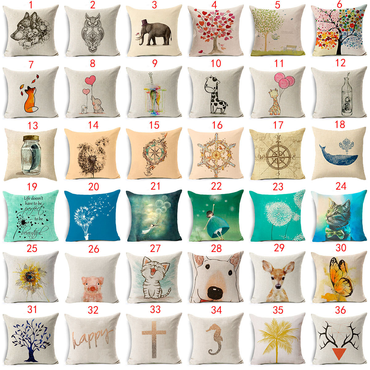 Pillow Covers18x18 Cartoon Animal Flowers Tree Throw Pillow Case Cushion Cover Product description Don’t go bland with your pillows. Improve your home decor, our pillow case perfect for both indoors (living room, bedroom, etc.) or outdoors (patio, RV, etc.) Durable and environmentally friendly material,washable and easy to clean. It is the happiest moment in the world to lay down after a hard day while holding your pillow. FEATURES: -Material: 50% Cotton + 50% Linen. -Pattern: Printing just on one side , do not fade after washing. -SIZE & MATCH:Pillow covers are 18 x 18 inches and fit for 18" x 18" or 20" x 20" pillow inserts ( WITHOUT INSERT) -Touch Felling: Touches a little rough -Laundry Guide: Directly washed and dry in the shade -Zipper:there is a Zipper to close the cover. Hidden slide fastener design for good looking,Glides smoothly and allows easy insertion and removal of pillow inserts. -Package Includes: 1 * Pillow Case WITHOUT INSERT Contact Us If you have any questions or inquiries, our customer service staffs will be pleasant to serve you. We try our best to reply you as earlier as we can, however, due to high volume of daily incoming emails and time zone difference, we may not be able to reply your emails immediately. Please allow 24 business hours for us to respond.A bid on our stores states that you have read and agreed with all Terms and Conditions and our shipping fee. Payment ● All payments should be made within 7 days after auction close, If payment postponement is required, Please let us know. ● If you order more than 3 item, please request. INVOICE COMB INATION before you make payment. ● Please make sure your shipping address is as listed in EBAY. Note: ● Any import du ties, taxes are not included in the item price or shipping charges, which maybe occur in destination countries and sho uld be paid by buyer. ● Please check with customs office in destination countries to check , whether you should pay any duties & taxes before you bidding/buying。 Shipping Terms 1. We ship to your eBay or Paypal address. Please make sure your eBay and Paypal address is correct before you pay. 2. Items will be shipped within 5-10 business day when we received payment. 3. Delivery time depends on destination and other factors; If your order amount more than about 10 USD , we usually will use standard shipping for your order that with full tracking information. 4 .International buyers please note: a .Import duties, taxes and charges are not included in the item price or shipping cha rges. These charges are buyer’s responsibility. We will try our best to reduce the risk of the custom duties. b. Please check with your country's customs office to determine what these additional costs will be prior to buying. Returns Returns accepted within 30 Days after parcel arrival. Customer is responsible for shipping charges on any returned items. We will refund or make a replacement depending on our available stock Feedback ● If the products and services from us are satisfying, your positive feedback and 5 stars of Detailed Seller Ratings is highly appreciated!! . ● We will automatically leave positive feedback after receipt of positive feedback from you. ● When you rate the shipping part , please take international business into consideration . ● We aim at to make sure you have pleasant shopping with us. Please email us before leaving any 1 or 2 ratings, negative feedback or open any dispute. We understand the feeling and frustrations you might have, and will do our endeavor to resolve the issues. Please give us the chance to resolve any problem.