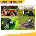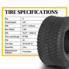 Specifications:1. PLY: 43. Tread Depth (mm): 54. Rim Width: 7.00 inch5. SW: 9.06" / 230mm6. OD: 18.11" / 460mm7. PSI: 148. Tire Size: 18x9.50-89. Quantity: 2 Pcs10. Placement on Vehicle: Front,Rear11.Max load(lbs):62412.Construction Type:B Package Includes:2 x Tires [Application] - Original equipment tread design with fine workmanship, this tire can function well exactly as same as the original one. Multipurpose turf friendly design for lawn & garden utility vehicles or golf carts [Specifications] - Tire Size: 18x9.50x8, Ply Rating: 4, psi: 24,Tread Depth (mm): 5,Rim Width (in): 7.00 ,SW: 8.77" ,OD: 18.27" ,Max Load (lbs): 815. [Features] - A perfect combination of premium rubber material and sophisticated workmanship. Heavy 4 ply rated nylon construction resists punctures and abrasions [Function] - It can prevent the vehicle parts from violent vibration and early damage, adapt to the high-speed performance of the vehicle and reduce the noise when driving, and ensure the safety, handling stability, comfort and energy-saving economy of driving. [NOTE] - Certificate of DOT compliance number: R3. And NOT FOR HIGH WAY SERVICE, tire speed cannot exceed 80 km/h. Tire only, rim NOT included