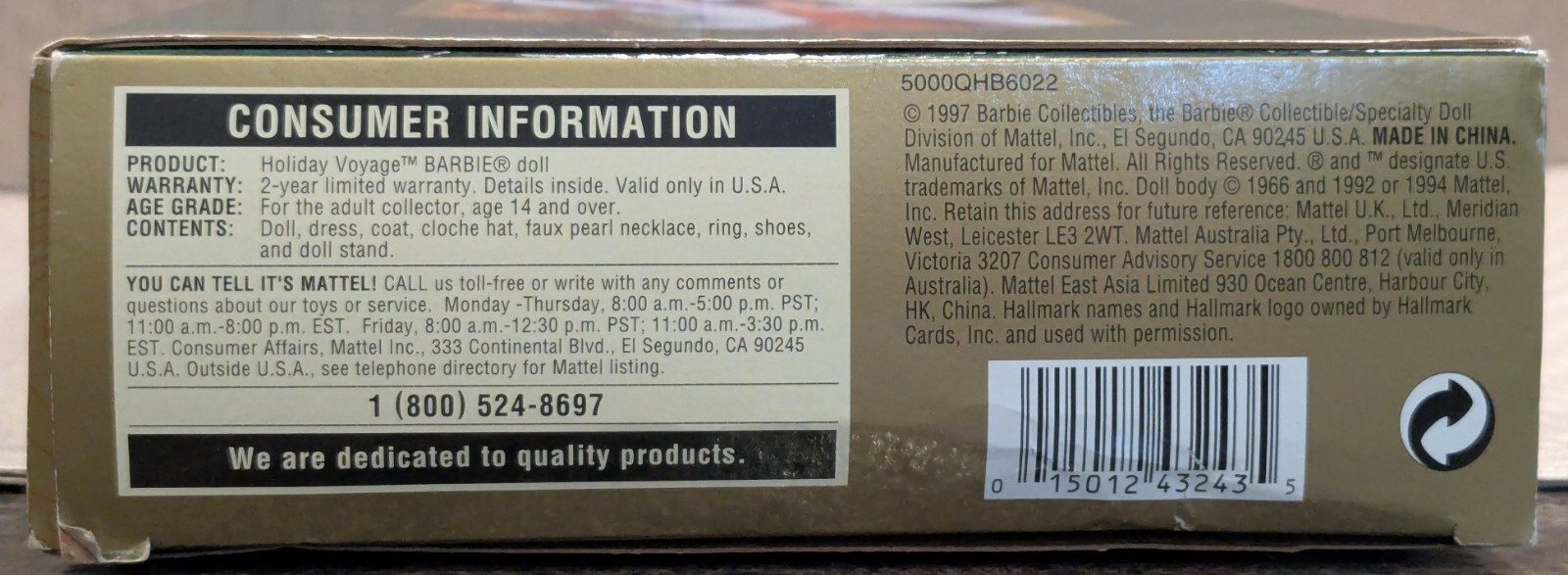 $ 15.842002 Mattel Holiday Celebration Barbie Doll - 56209 - - AS IS