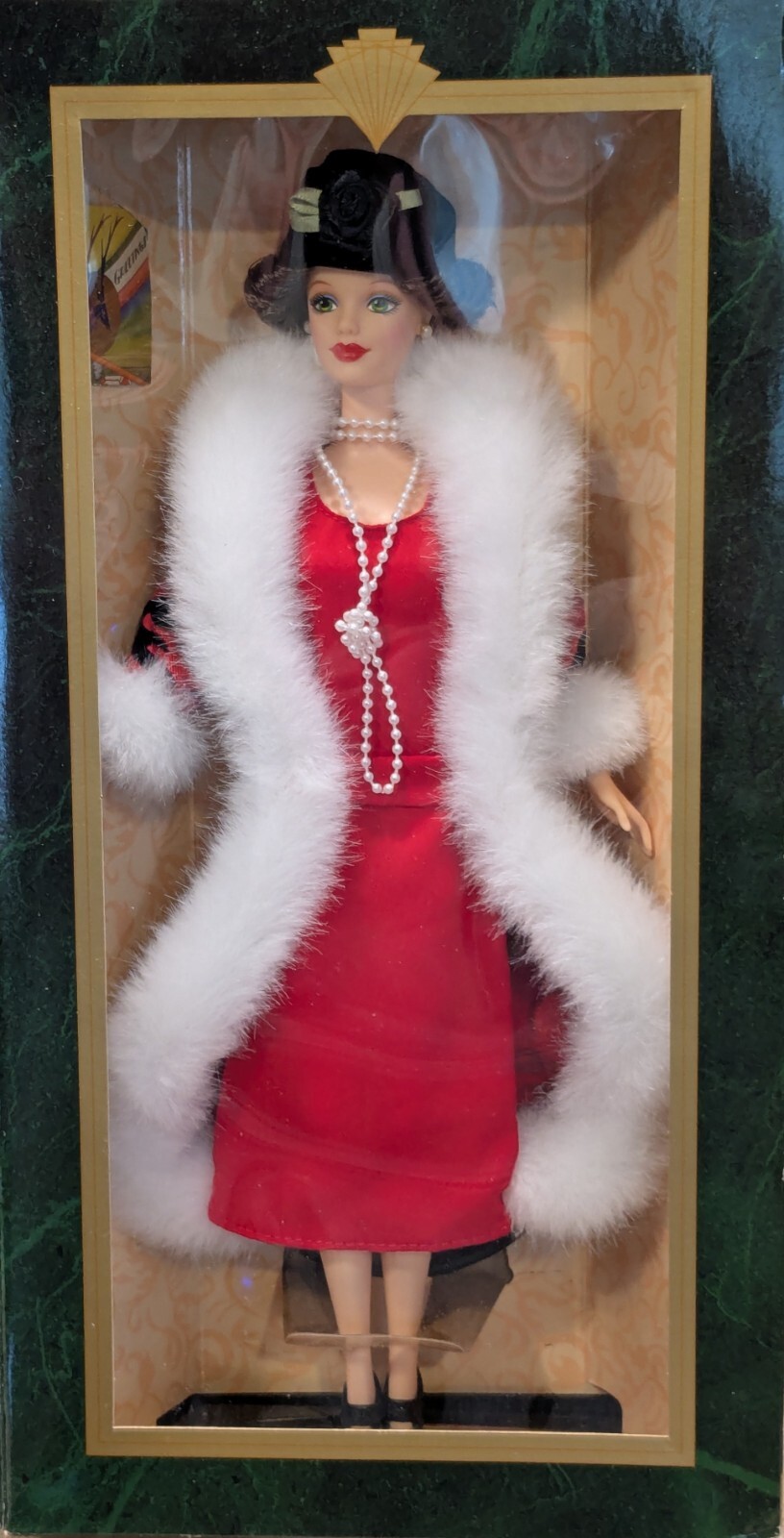 Step back into the Roaring Twenties with the exquisite Holiday Voyage Barbie Holiday Homecoming-1920’s Flapper (Model #18651). This stunning, mint-in-box collectible captures the spirit of the Jazz Age, with Barbie dressed in a glamorous flapper ensemble complete with a sparkling beaded dress and feathered headband. Her elegant look is complemented by the rich details of the 1920s era, making this doll a true work of art. In pristine condition, still sealed in its original packaging, this doll is a sophisticated addition to any collection, embodying both timeless beauty and vintage charm.