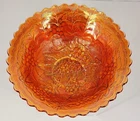 BRAND: From the late 1920s to the early 1930s, Imperial Glass Co. in Ohio, USA. made this large serving bowl in Marigold Lustreware. It has a grape relief and scalloped edge. Perfect for a decor piece, the color is stunning. LOC/R-4 COLORWAY: Marigold (Orange) with a luster finish. SIZE: Approximately 10" Across and 3" Tall. CONDITION: Excellent vintage condition that has been well cared for. I have found no signs of chips or cracks. Please see my photos for exact detail. Thank you so much for shopping my store and if you like vintage check out the rest of my offerings!