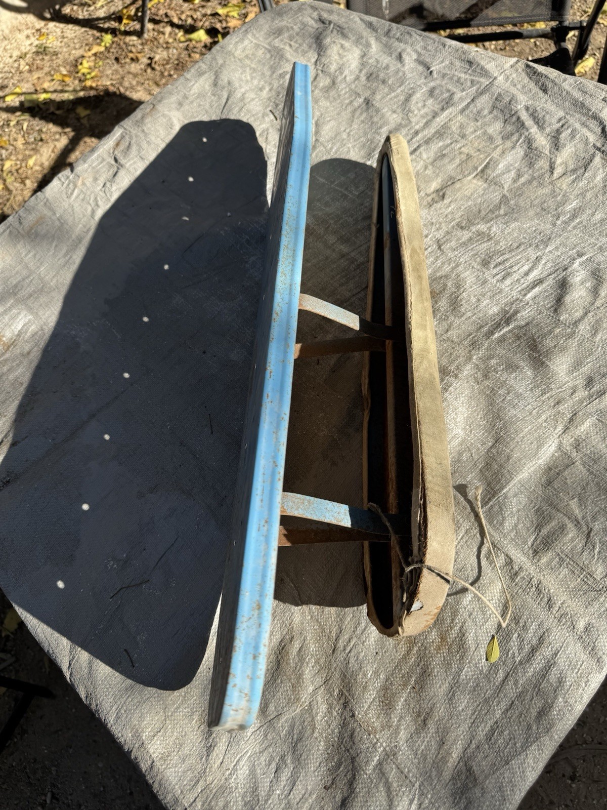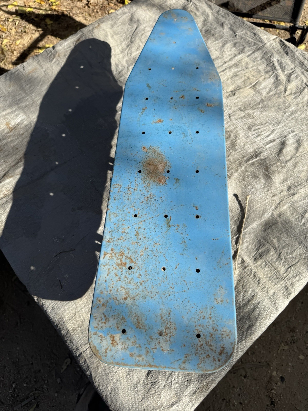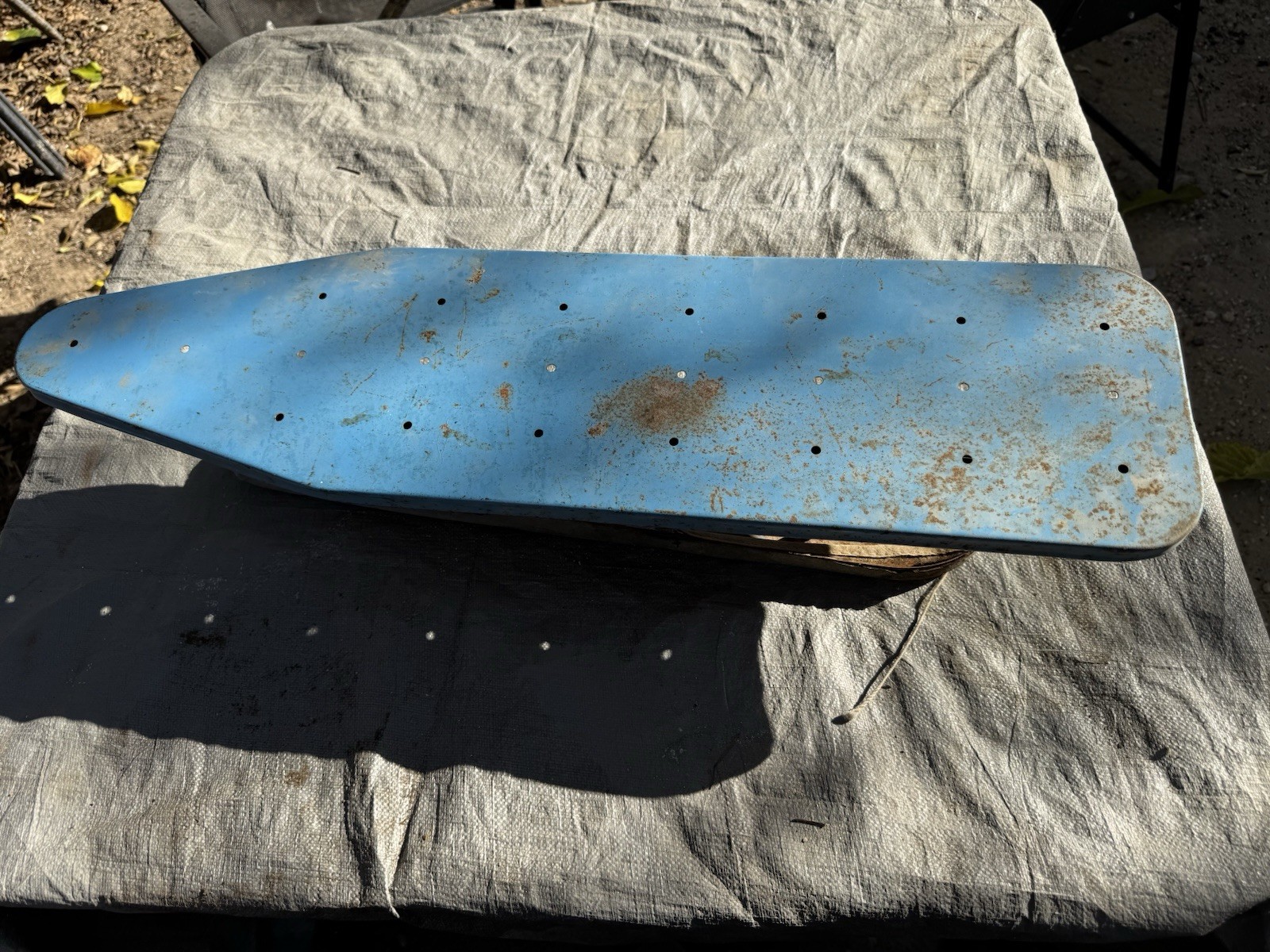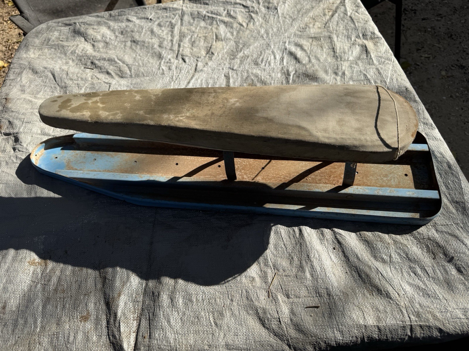 Condition: Pre-owned / Vintage • Heavy surface rust and paint loss consistent with age • Rust present on metal legs and underside • Original fabric pad is very worn, stained, and deteriorated • Pad shows fraying, discoloration, and age-related damage • Structurally intact but shows significant cosmetic wear • Sold as-is due to age and condition Please review all photos carefully, as they are part of the description and accurately show the item’s condition.
