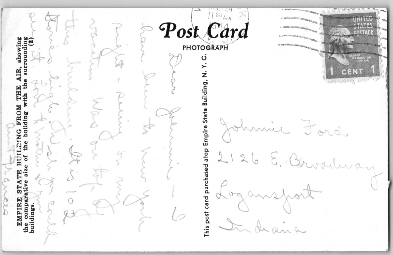 You are buying a Vintage " C 1940 RPPC Aerial View Empire State Building New York City B&W Postcard . " Card Size is approx. 3.5" X 5.5". In stock, Usually Ships Within 24 hours! 100% Satisfaction Guaranteed! If you have any problems with this purchase, please contact me before leaving feedback, and I will do my absolute best to make you satisfied. Check all my other listings in my store. RETIREDWITHBOOKS. Thank you!