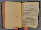 The Book of Common Prayer, Psalter, Episcopal Ch 1952 Oxford U Press Leather? THE BOOK OF COMMON PRAYER and Administration of the Sacraments and Other Rites and Ceremonies of the Church ACCORDING TO THE USE OF THE PROTESTANT EPISCOPAL CHURCH IN THE UNITED STATES OF AMERICA Together with the Psalter or Psalms of David OXFORD UNIVERSITY PRESS Certificate, September 1952 Printed in the United States of America Cover : The cover is believed to be leather but it is not so labeled and I do not claim to be an expert on cover materials. It just looks like leather to me at the small areas of wear. If not leather, the cover is certainly a nice quality vintage imitation leather material. Size : 3 ¾ x 5 ⅞ x ⅝ inches Pages : 611 Publisher code (inside last page) T 2 61 07316 This book is in good condition. The name and church of a previous owner is written on the second page with a date (1961). No other marks are observed. The binding is good. The cover has a bit of light shelf/edge wear. There is a small split at the top/front of the spine. The front cover has been bent and lightly creased at the corners of the front cover and across the top of the back cover. Please see the photos.