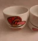 Add some retro charm to your dining table with this set of four vintage serving bowls. The porcelain bowls feature a colorful orange and white mushroom design, perfect for a mid-century modern themed dinner party. Each bowl is round in shape and 2.25 in height making them ideal for serving. The set includes four bowls and is manufactured in 1960 using the pottery production technique. The brand is Serving Bowls Mushroom and the style is art pottery. Perfect for collectors or those who appreciate unique and vintage pieces.