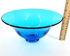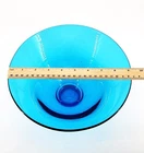 UNBRANDED: Studio Hand Blown Art Glass Serving Bowl/Contemporary Décor. COLORWAY: Beautiful Electric Blue Clear Art Glass. SIZE: Approximately 9" Wide and 4" Tall. CONDITION: Beautiful 1980s Electric Blue clear Art Glass bowl is in lovely condition. I have found now signs of chips or cracks. The color is absolutely stunning, please see my photos for a more detailed review of the condition. This would make a wonderful service bowl, or even a art glass display piece! Thank you for shopping with me and have a wonderful evening!