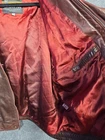 This London Fog classic burgundy leather jacket is the perfect addition to any wardrobe. With a solid pattern and button closure, it is suitable for both travel and casual occasions. The jacket is made of high-quality leather and has a red color that adds a pop of style to any outfit. The jacket is a size L and has a regular fit. It is dry clean only and has a removable lining for added convenience. The jacket is insulated with polyester/acrylic and is suitable for winter, fall, and spring seasons. This vintage jacket has accents of buttons and a zip-out liner for added style. It is a must-have for any fashion-conscious man. Please see pictures for details. Please see photos above for all measurements. Our items are all carefully examined, measured, photographed and stored in a smoke free environment. - We do our best to describe accurately and measure approximately at the time of listing, but just in case, we offer 30 day free returns on unused/unworn items. - 100% authenticity guaranteed. This item will ship out via USPS Mail with a tracking number for confirmation. Items are shipped out everyday Monday - Friday except Holidays. Please feel free to ask any questions you may have.