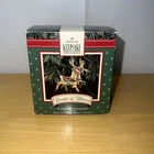 Add some festive charm to your holiday decorations with this 1992 Hallmark Santa Claus & His Reindeer ornament set. Crafted with care, this set includes six of eight reindeer ornaments, each shaped as Santa's trusty helper. The intricate details and vibrant colors make these ornaments a delightful addition to any collection. Whether you're a seasoned collector or just starting out, these ornaments are sure to bring joy to your home. Perfect for displaying on your tree, mantelpiece, or anywhere else you want to show off your holiday spirit. Don't miss out on this opportunity to add a touch of whimsy to your holiday decor.