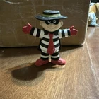 This 1995 McDonald's Happy Meal toy figurine set features the beloved characters Ronald McDonald and Hamburglar. Made of PVC material, these vinyl figures are perfect for collectors and fans of the McDonald's franchise. The set includes model year Ronald McDonald and Hamburglar, along with other fun accessories. This item is a must-have for any McDonald's or fast food culture enthusiasts.