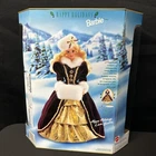 This 1996 Holiday Barbie Special Edition is a rare find with her unique purple eyes. The 11-inch vinyl doll has curly blonde hair and a light complexion, wearing a festive outfit from the Happy Holidays Barbie product line. This original, unopened packaging is a must-have for collectors and fans of the iconic doll series. The doll is a girl doll and is not signed, but she is a special edition with features that make her stand out from other Barbie dolls. The doll was manufactured in China in the 1990s and is an original, licensed reproduction.