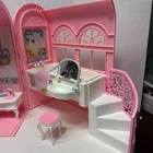 1998 VINTAGE Barbie Bed & Bath Playset House Fold Up Pink Case Purse Doll Set. This compacted toy has everything a child would need to re create bath and sleep. Will have play for hours then pack it up. Light weight to be carried and stored. 2 bed trays, tea pot, tea cup, plate w/ silverware. Canopy & Bed covering with pillow. Stool, hair dryer and 2 soap dishes . Glasses and a pair of shoes. A vase and inside dresser - necklace and bracelet. Comb, brush and pic, 2 purses and a framed photo of Barbie. Total of 27 loose accessories. This case has discoloration on top and shows wear from age and storage. All pieces all a counted for to the best of my knowledge, may have extra and would make a great addition to your existing collection or a play set for a child.