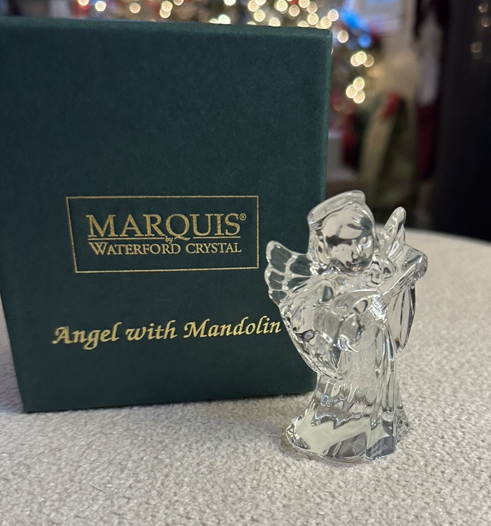 Home1999 Marquis Waterford Crystal Angel Playing Mandolin Figurine New with Box