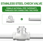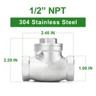 [ Product Type ] Swing Check Valve(1/2" NPT Female) ,for industry connecting pipes or fittings with different end types, diameters, or materials. [ Metal ] 304 stainless steel strength and resistance to corrosion. [ Working Temperature& Maximum Pressure ] Temperature range from -60 to 450 degrees F.Maximum working pressure is 1000PSI. [ Introduction ] Used to prevent fluid backflow, good tightness, no leakage, easy to install and disassemble. [ Applications ] Widely used in fuel/air/liquid/oil/gas, pipeline applications and connections, and can be used in various measuring devices and collectors.