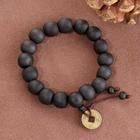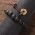 1Pc Wood Bead New Buddha Bracelet Buddhist Bangle Prayer Beads Copper Coin