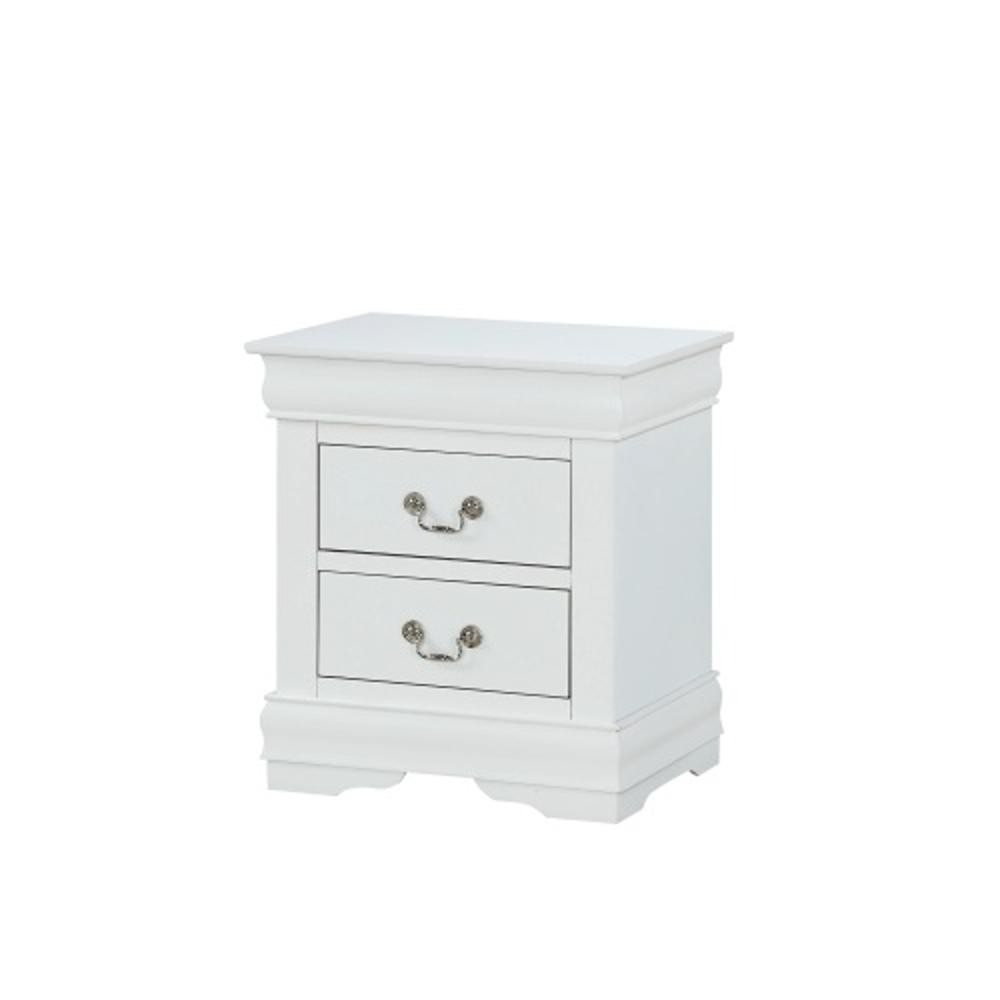 1pc Nightstand, White, Antique Nickel Hanging Pulls, Solid Wood, Transitional Product Description: Transitional Style White Color Solid Wood, Wood Veneer, Others English Dovetail Construction Bracket Feet Antique Brass Hanging Pulls Drawers storage Bedside Table Listing Includes :- 1x Nightstand Only. Product Description Product Description:- Style your master bedroom however you like with this classic collection, featuring multi-storage case goods, all with an identical color finish. The nightstand allows you to store clothes, bedding and any other items. Bring a unique taste to your bedroom while creating a relaxing and stylish environment. Product Dimensions:- Nightstand :- 21"L X 15 1/2"W X 23 1/2"H Listing Includes :- 1x Nightstand Only. Bed, Dresser, Mirror, Chest Is Not Included. Simple Assembly Requires: Features:- Transitional White Solid Wood, Wood Veneer, Others English Dovetail Construction Bracket Feet Antique Brass Hanging Pulls Delivery We Do Not Ship Outside of the Continental US. Return Policy All items qualify for returns within 30 days of receipt. Buyer is responsible for return shipping on any item that is not damaged. Feedback We take our reputation seriously, we buy and sell online, so we understand the value of trust. If you are unsatisfied with your order, please contact us and we will work with you to resolve it to your satisfaction.