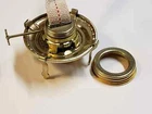 Brand New #2 brass plated oil burner. Comes with 7/8" wick and removable screw-on collar. This well made, functional burner fits many lamps. WITH COLLAR BURNER FITS MOST LAMPS WITH A 1 11/16 INCH THREADED NECK WITH COLLAR REMOVED IT HAS A 1 3/16 THREADED BASE BURNER HAS A 3 INCH CHIMNEY HOLDER WICK IS 7/8" X 7" Accepts a 3" base chimney. VISIT OUR EBAY STORE FOR MORE OIL LAMP PARTS THANK YOU FOR SHOPPING WITH LAMP PARTS